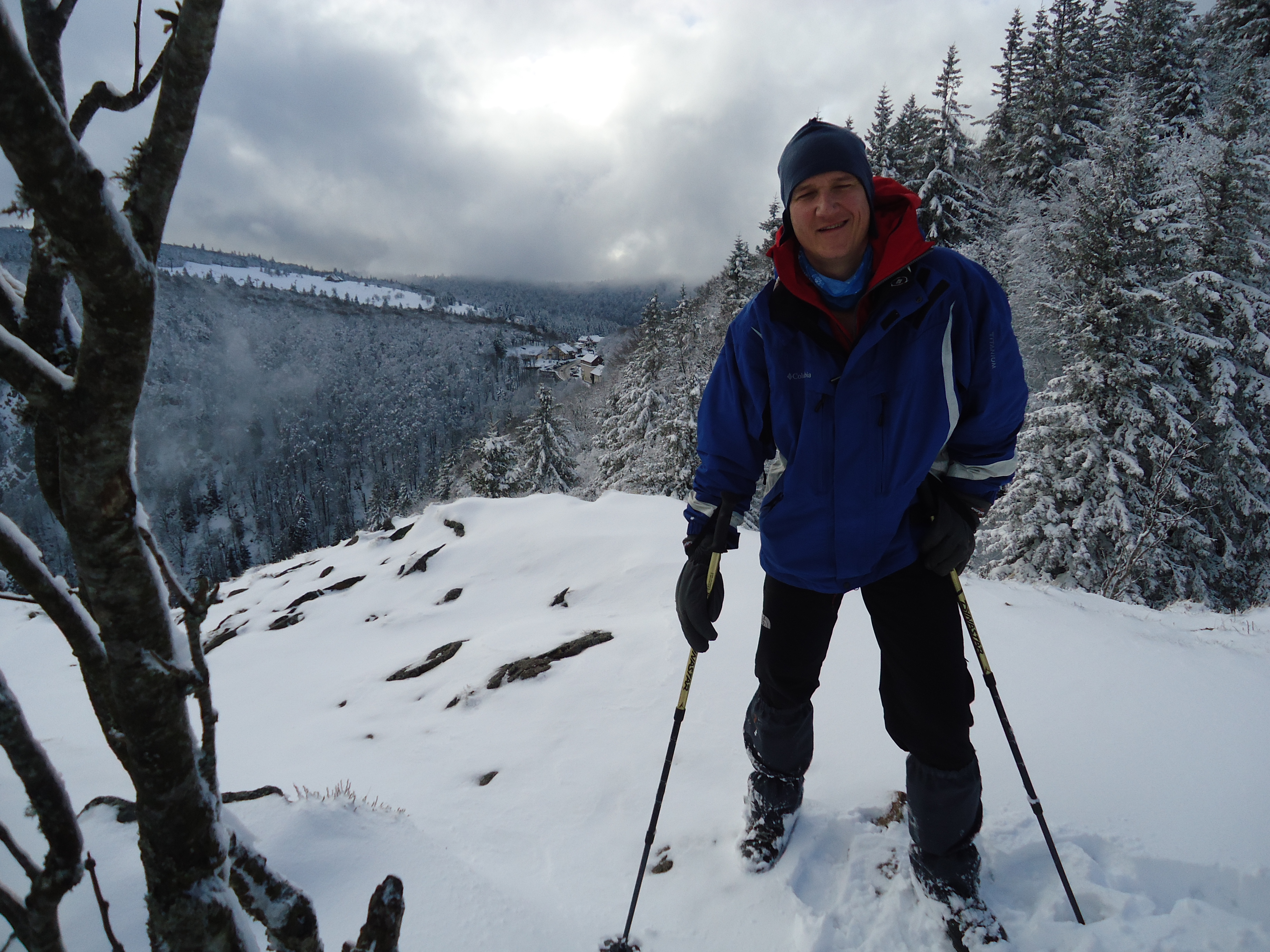 Le dimanche, il ne pleut presque plus au centre : direction le Tanet. Nous avons enfin pu admirer le panorama grâce aux éclaircies qui sont apparues dans la journée. Avec la neige fraîche sur les sapins, le paysage était magnifique. Comme d’habitude, le repas de midi a été un grand moment de bravoure à l’auberge de Schantzwasen avec au menu selon le cas : hamburger de renne, Strudel, ou repas marcaire. Le plus dur est toujours de repartir. Après 2 nouvelles heures de marche, retour au centre pour une bonne douche et le retour sur Bar le Duc.